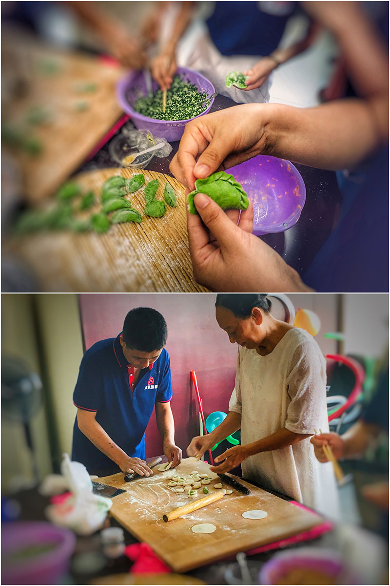 有人和面、有人搟面、有人學著包餃子,在其樂融融的氛圍里餃子很快就包好了,看著是不是很有食欲呢?