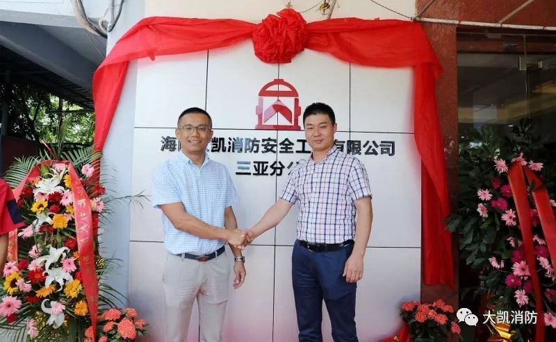 大凱消防總公司黃總(右)與三亞分公司歐總(左)一同為分公司揭牌